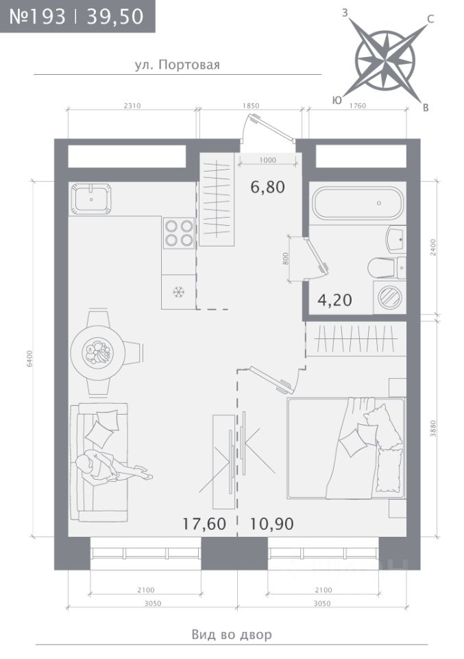 Продаётся 1-комнатная квартира в строящемся доме (Дом 1), срок сдачи: IV-кв. 2027, общей площадью 39.5 кв.м., на 14 этаже.