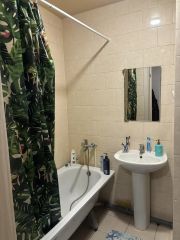 Санузел совмещенный, оснащен ванной, на стенах плитка. В просторной прихожей есть возможность для установки вместительного шкафа-купе.
