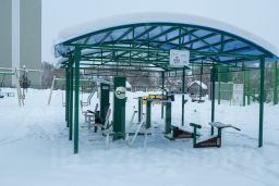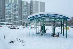 -дворовая территория с детской и спортивной площадками; закрытый двор без машин