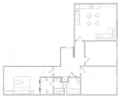 • Планировка: 85,3 кв.м, три полноценные комнаты (детская 14,3 кв.м, кабинет 11,3 кв.м, мастер-спальня с гардеробом 20,5 кв.м) и кухня-гостиная 22,3 кв.м