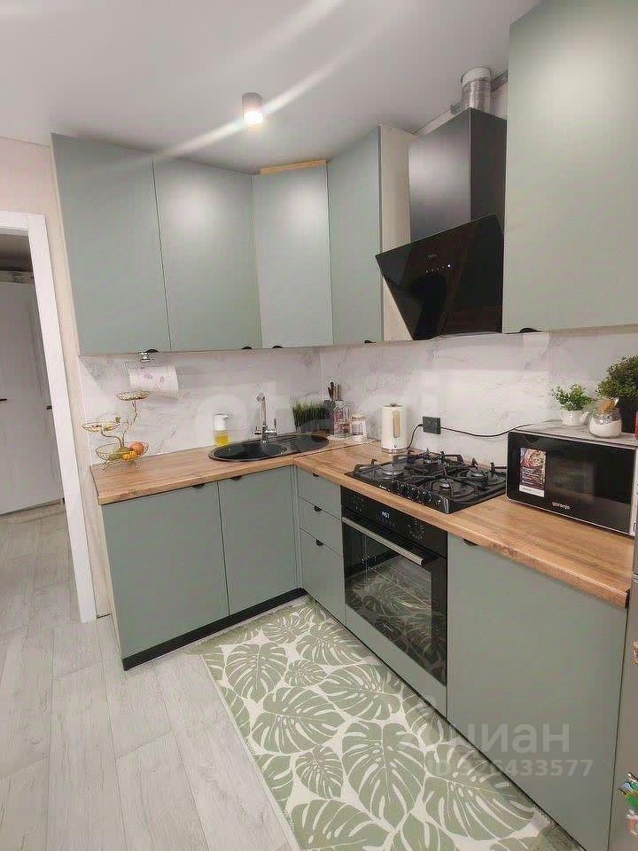 Остаётся встроенный новый кухонный гарнитур, все шкафы — экономия времени и денег!