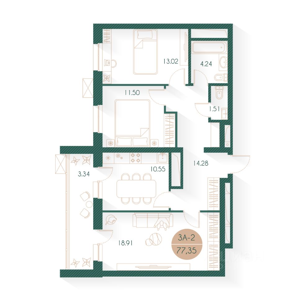 Продаётся 3-комнатная квартира в строящемся доме (Корпус 5 - Литер А,Б,В), срок сдачи: II-кв. 2027, общей площадью 77 кв.м., на 7 этаже. ЖК "Наследие" представляет собой комплекс из пяти многоэтажных зданий. Каждый дом оснащен современными лифтами и системой видеонаблюдения для обеспечения безопасности жильцов.