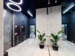 Подъезд с сквозным входом: можно выйти во внутренний двор или на внешнюю сторону — к кафе и городской инфраструктуре.