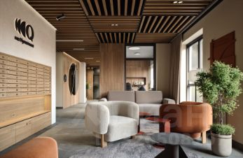 Дворы и входы в подъезды выполнены без пандусов и ступеней. Входные группы оформлены в современном стиле с природными оттенками. Холлы выполнены по авторскому дизайн-проекту и включают домофоны в тёплых зонах, бесшумные скоростные лифты, места ожидания, паркинг для колясок.