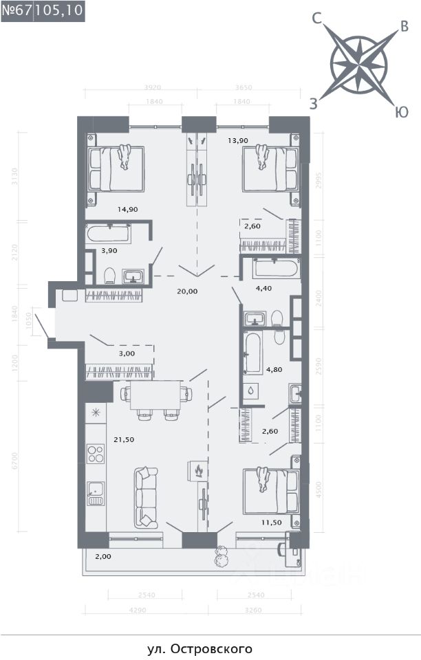 Продаётся 3-комнатная квартира в строящемся доме (Дом 4), срок сдачи: I-кв. 2026, общей площадью 105.1 кв.м., на 8 этаже. Costura Town расположен в историческом районе Казани "Суконная Слобода". Развитая инфраструктура района обеспечивает высокое качество жизни и неограниченные возможности. Торговые и Бизнес-центры, государственные и административные учреждения, лучшие школы и ВУЗы, парки и скверы, кафе и рестораны - всё находится здесь.