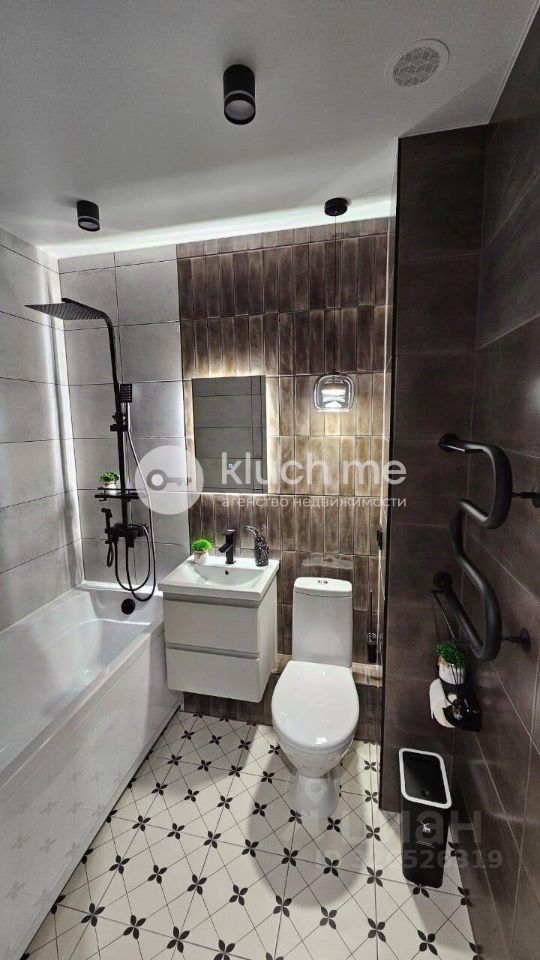 • Совмещенный просторный санузел, керамогранит, натяжной потолок, качественные смесители, большая ванная.
