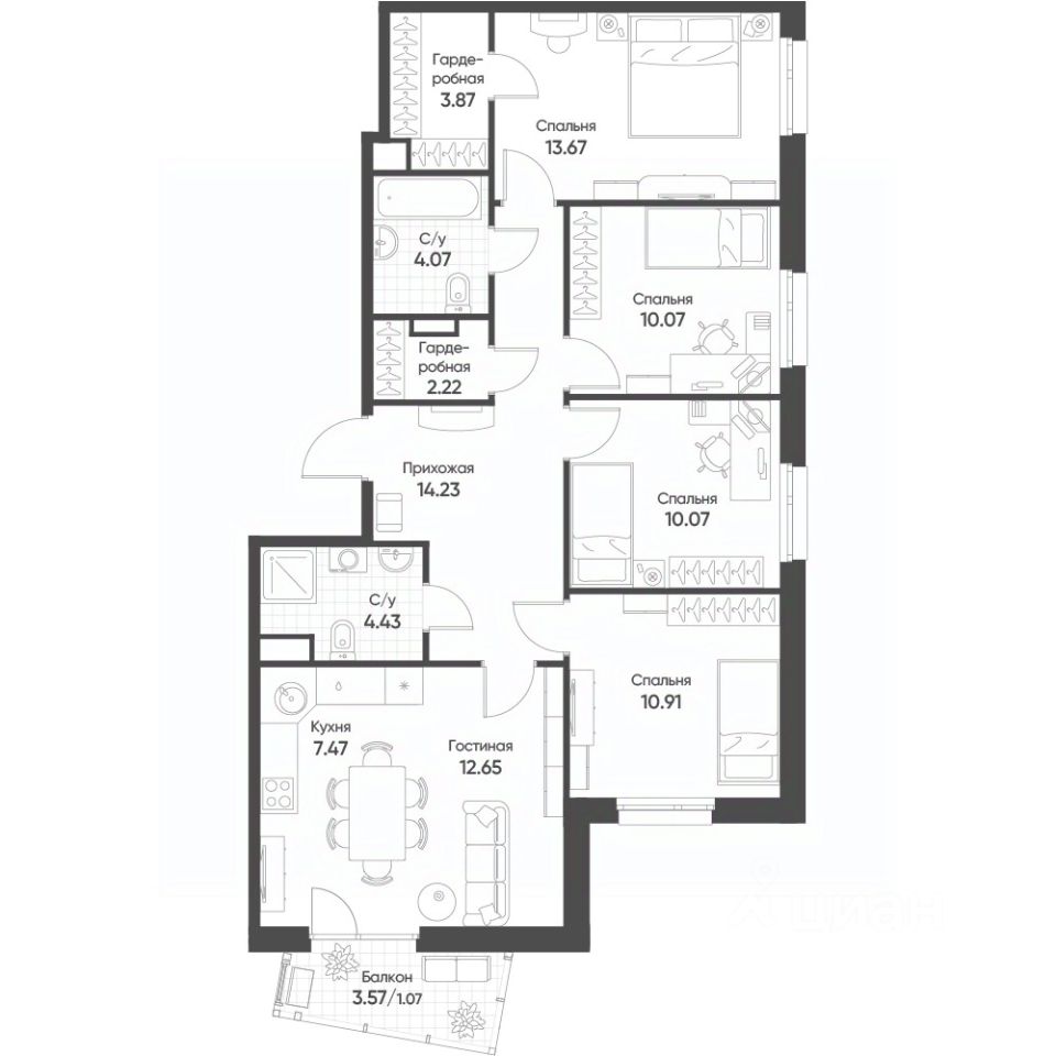 94,7 м²