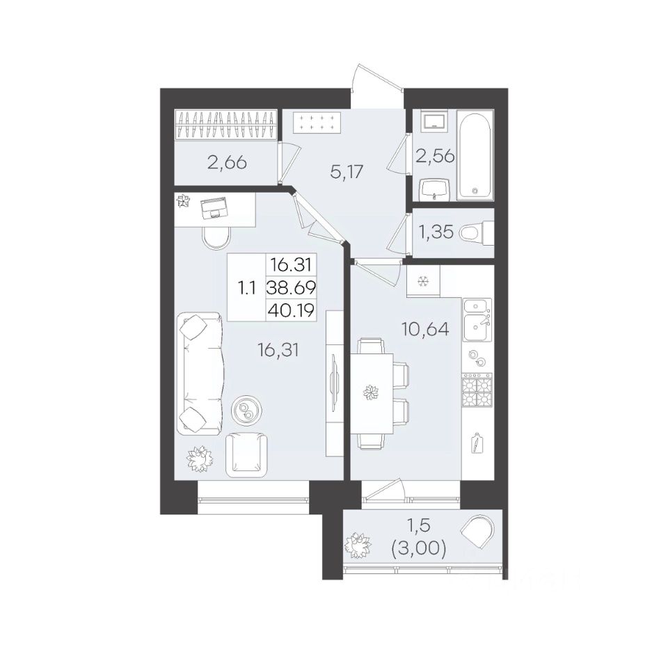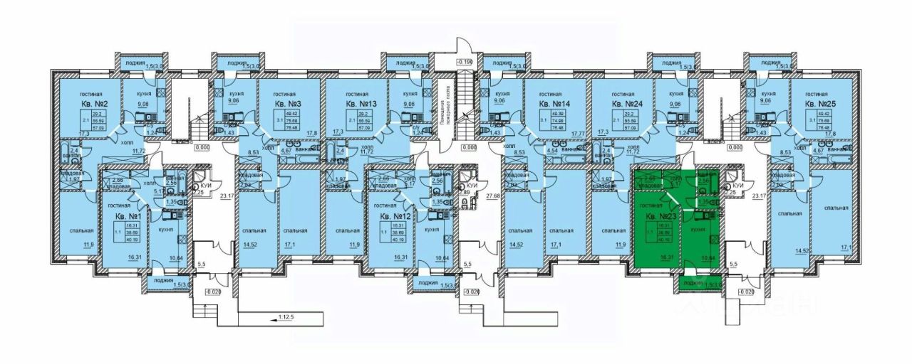 Продаётся 1-комнатная квартира 23 в доме 4 общей площадью 40.19 кв.м