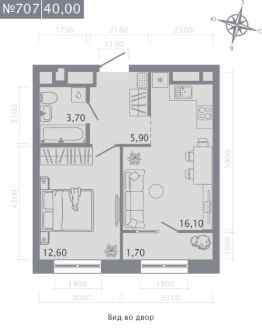 Продаётся 1-комнатная квартира в строящемся доме (Корпус 2), срок сдачи: I-кв. 2029, общей площадью 40 кв.м., на 7 этаже.