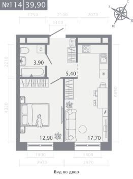 Продаётся 1-комнатная квартира в строящемся доме (Корпус 2), срок сдачи: I-кв. 2029, общей площадью 39.9 кв.м., на 9 этаже.