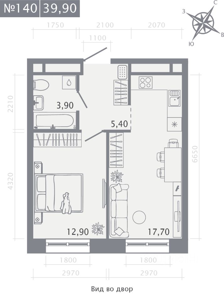 Продаётся 1-комнатная квартира в строящемся доме (Корпус 2), срок сдачи: I-кв. 2029, общей площадью 39.9 кв.м., на 11 этаже.