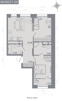 Продаётся 2-комнатная квартира в строящемся доме (Корпус 2), срок сдачи: I-кв. 2029, общей площадью 57 кв.м., на 3 этаже.