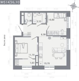 2-комн. квартира, 56,1 м²