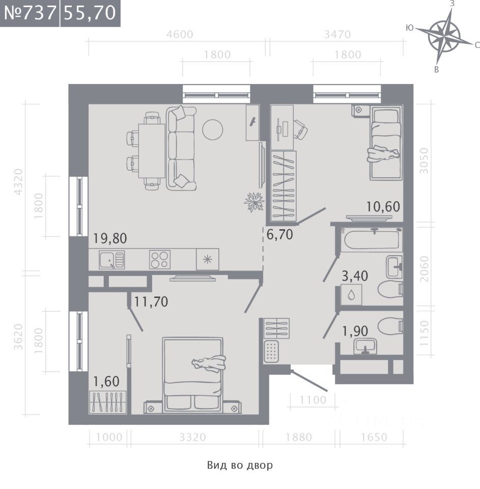 Продаётся 2-комнатная квартира в строящемся доме (Корпус 2), срок сдачи: I-кв. 2029, общей площадью 55.7 кв.м., на 11 этаже.