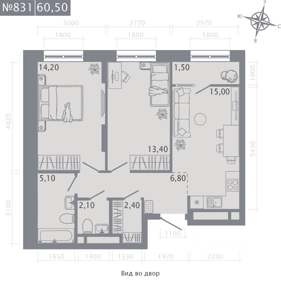 Продаётся 2-комнатная квартира в строящемся доме (Корпус 2), срок сдачи: I-кв. 2029, общей площадью 60.5 кв.м., на 13 этаже.