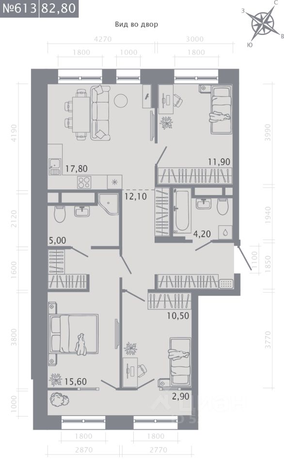Продаётся 3-комнатная квартира в строящемся доме (Корпус 2), срок сдачи: I-кв. 2029, общей площадью 80 кв.м., на 11 этаже.
