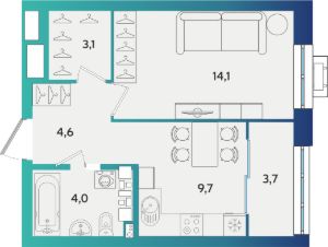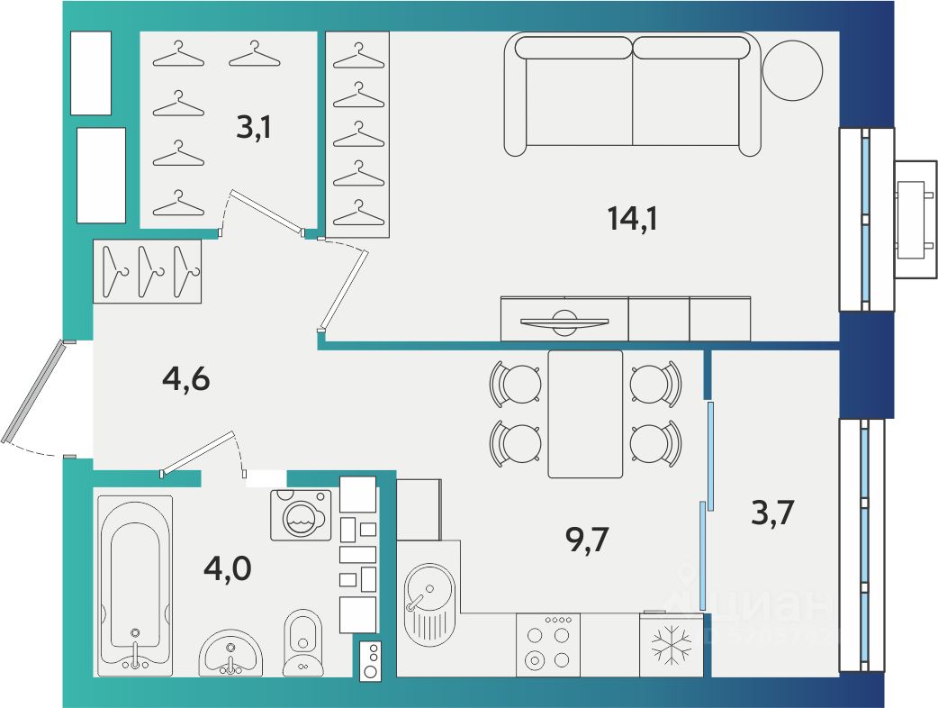 Продаётся 1-комнатная квартира в строящемся доме (Дом А-4.2), срок сдачи: IV-кв. 2026, общей площадью 39.2 кв.м., на 7 этаже. Новый жилой комплекс "Экополис А4-1" от застройщика "ГК АСПЭК-Домстрой" расположен по адресу город Альметьевск, Объездная улица.