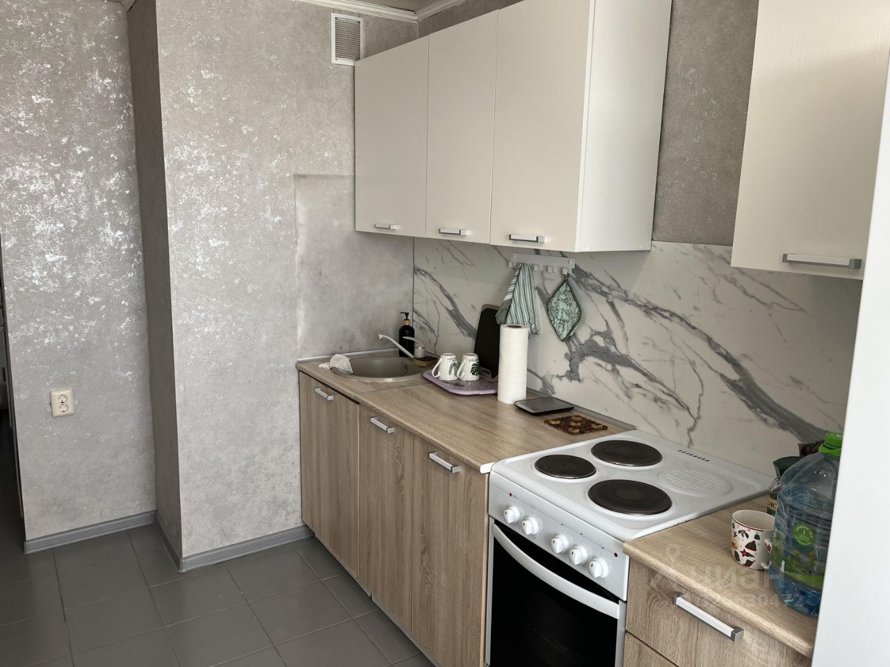 Квартира продается полностью меблированной и со всей техникой (холодильник, стиральная машина, кондиционер, СВЧ, плита, диван).