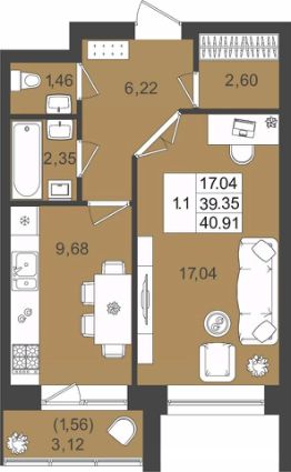 Дом 5, квартира 10 в 40,91 кв.м. на 2 этаже 5-эт. дома.