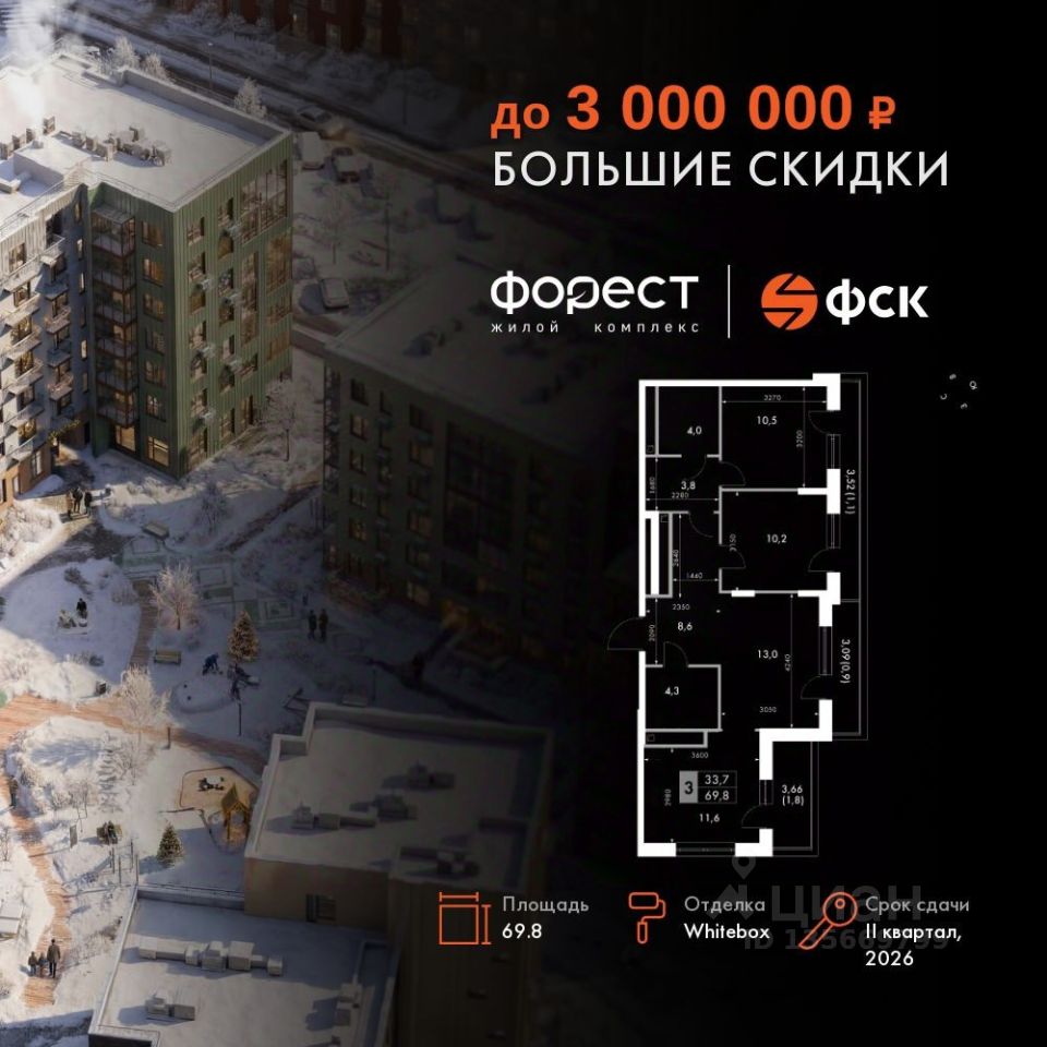 Прямая продажа от застройщика! Корпус 1.1 сдан! Жилой Комплекс комфорт-класса. Продаётся 3-к квартира номер 113 общей площадью 69.8 кв.м. на 6-м этаже 6 этажного здания. Отделка Whitebox. Цена с учётом скидки. Особенности квартиры: - Мастер-зона с санузлом и гардеробной. Всё для вашего комфорта и удобства, включая личный санузел и гардероб. - Угловая планировка - больше пространства для ваших идей. - Увеличенное количество окон - дополнительное освещение и свежий воздух. - Евроформат - просторное и удобное жилье с отличной планировкой. - Просторная кухня - место для семейных ужинов и кулинарных экспериментов. - Гардеробная - удобство для хранения и организации вещей. - Балкон - открытое пространство для отдыха. - Лоджия - уютное место для отдыха и тишины. Квартира с предчистовой отделкой (White box). Вам не придется заниматься черновыми и трудоёмкими работы, а чистовую отделку и дизайн - сделайте на свой вкус. Информация о комплексе: "Форест" - жилой комплекс комфорт-класса, созданный для тех, кто ищет гармонию с природой, не отказываясь от городского ритма. Расположенный в окружении леса и реки, он воплощает мечту о загородной жизни со всеми удобствами города. Здесь можно проживать самые тёплые моменты с близкими, дышать свежим хвойным воздухом, встречать утро на собственной террасе или проводить вечера с друзьями под открытым небом. Благоустроенная территория, прогулочные дорожки и зоны отдыха создают атмосферу уюта и гармонии. Поблизости - лес и Волга, куда можно выбраться на прогулку в любое время, не дожидаясь выходных. Благодаря вечнозелёным растениям и продуманному озеленению, дворы остаются зелёными круглый год. Транспортная доступность: - 4 мин. пушком до автобусной остановки - 5 мин. на машине до школы Внутренняя инфраструктура: Продуманное пространство для жизни, отдыха и развития. На территории комплекса работает собственный детский сад - современное и безопасное пространство, где дети всегда рядом с родителями. Во дворе установлены игровые комплексы для активных прогулок и развития малышей на свежем воздухе. Жителям доступны кафе и магазины, площадки для прогулок с питомцами, зоны для пикников и барбекю. Для любителей активного образа жизни предусмотрены велодорожки, воркаут-зоны и тропы для хайкинга, а в шаговой доступности находятся планетарий и глэмпинг. Просторный двор без машин и закрытая территория с системой контроля доступа обеспечивают высокий уровень безопасности и приватности. Здесь можно по-настоящему расслабиться и чувствовать себя дома - в окружении природы, комфорта и заботы о каждом дне.