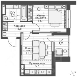 Продаётся 2-к квартира номер 43 общей площадью 43.5 кв.м. на 5-м этаже 7 этажного здания. Отделка Whitebox. Цена с учётом скидки.