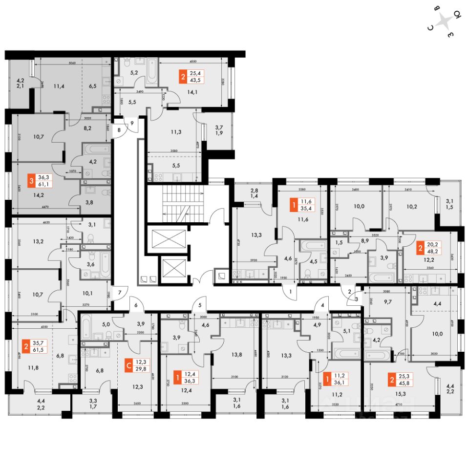 Продаётся 3-к квартира номер 51 общей площадью 61.1 кв.м. на 6-м этаже 7 этажного здания. Отделка Whitebox. Цена с учётом скидки.