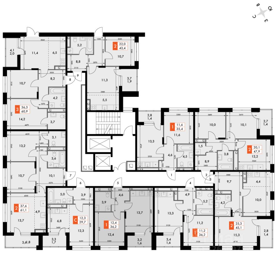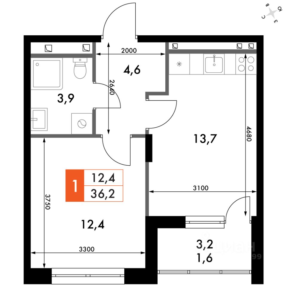 Продаётся 1-к квартира номер 57 общей площадью 36.2 кв.м. на 7-м этаже 7 этажного здания. Отделка Whitebox. Цена с учётом скидки.