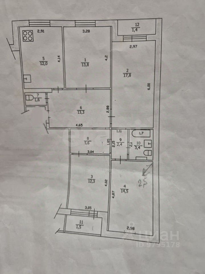 Общая площадь квартиры составляет 96,7 м². Квартира имеет оптимальную планировку (см.схему)