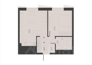 1 комнатная квартира площадью 48.57 кв.м. на 2 этаже в строящемся жилом комплексе премиум-класса "Академик".