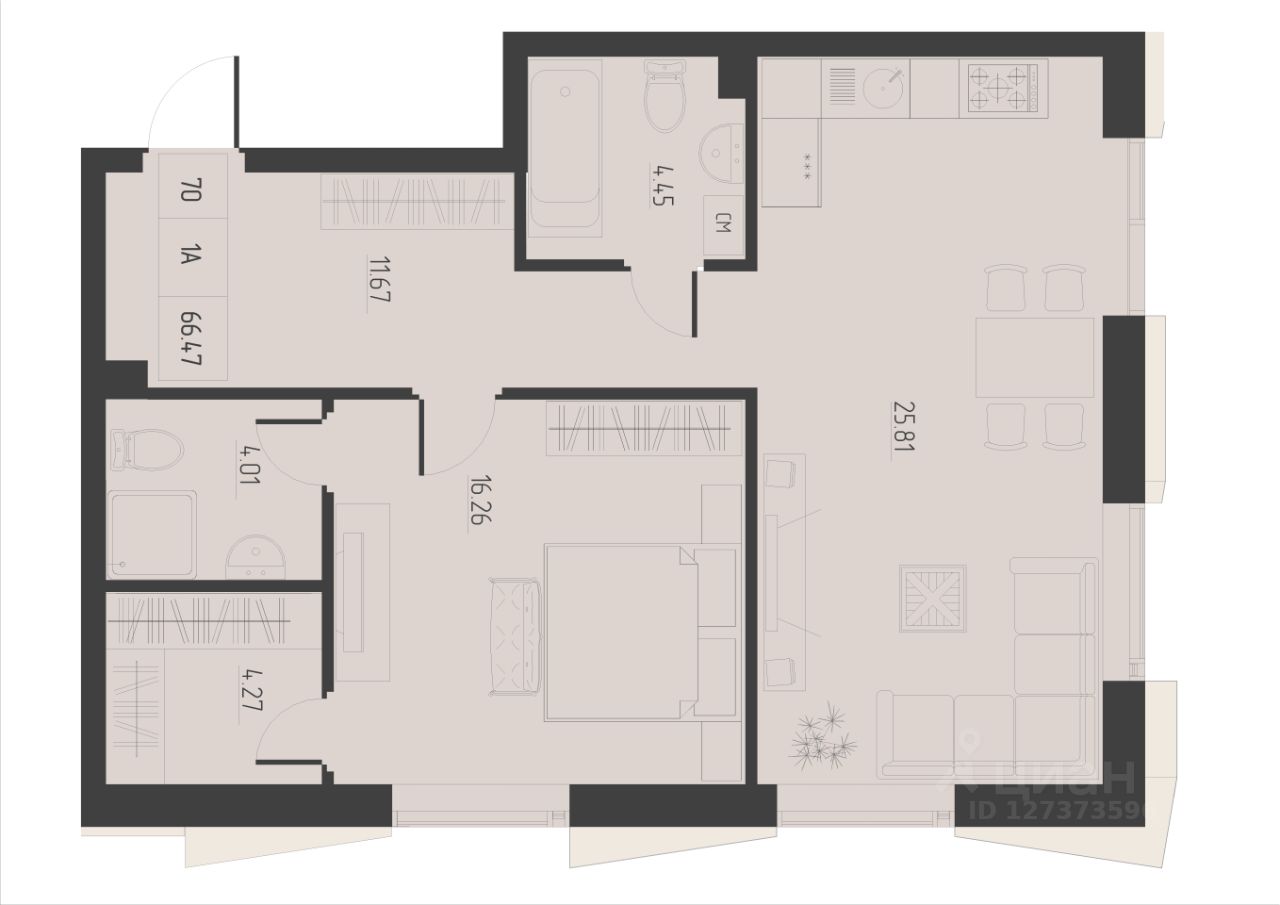 Продаётся 1-комнатная квартира в строящемся доме (Дом 1), срок сдачи: IV-кв. 2027, общей площадью 66.47 кв.м., на 3 этаже. Новый жилой комплекс "Академик" от застройщика "Арт-Строй" расположен по адресу: г. Казань, ул. Достоевского