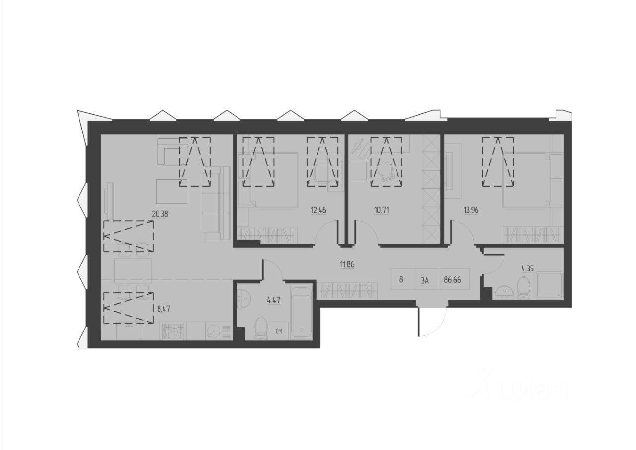 86,68 м²