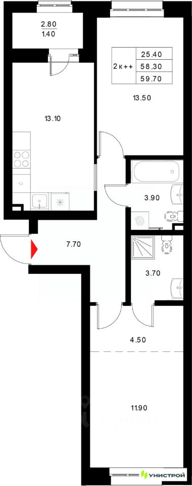Квартиры: от 28 до 99 м², 79 планировок, высота потолков 2,7 м.