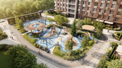 Закрытый двор: детские зоны для разных возрастов, стритбольная площадка, крытая велопарковка.