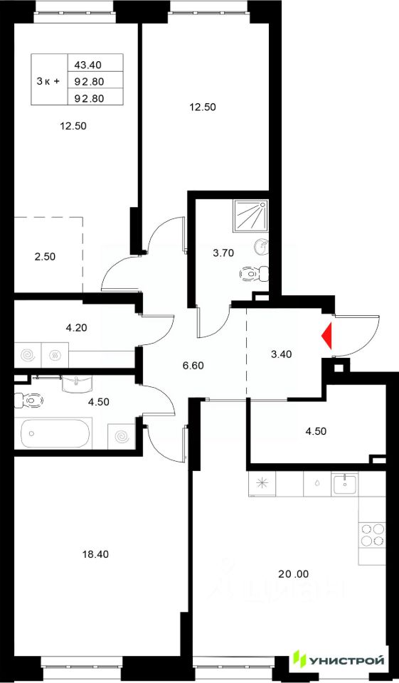 Квартиры: от 28 до 99 м², 79 планировок, высота потолков 2,7 м.