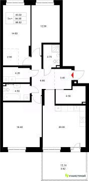 Квартиры: от 28 до 99 м², 79 планировок, высота потолков 2,7 м.