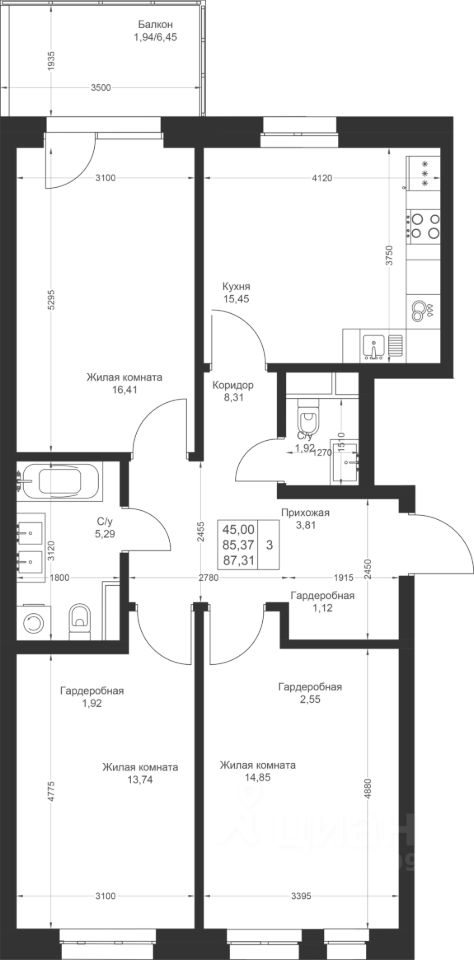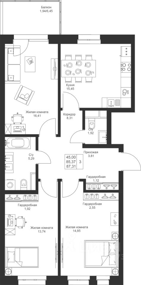 Комфортная 3-комнатная квартира с отдельной кухней и двумя санузлами. В квартире есть просторный балкон, где вы сможете организовать уютное место для отдыха.