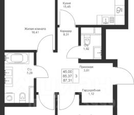 Продается 3-комнатная квартира 27 площадью 87,31 кв.м на 3 этаже в строящемся доме проекта "Новый свет" компании "Ак Барс Дом".