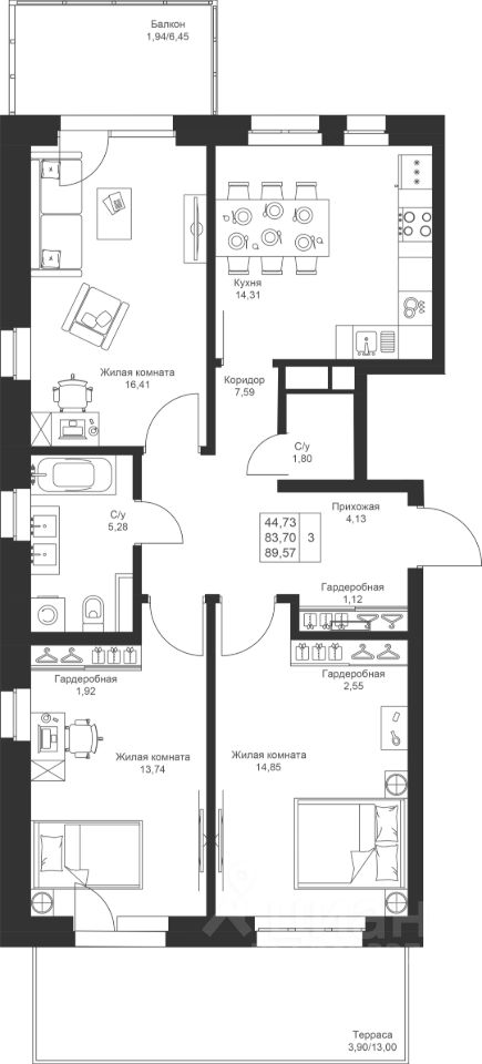 Комфортная 3-комнатная квартира с отдельной кухней и двумя санузлами. В квартире есть просторный балкон, где вы сможете организовать уютное место для отдыха.