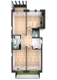 В проекте 3 комнаты для личного пространства домочадцев. Окна выходят на разные стороны дома, благодаря чему в помещениях будет больше света. В прихожей есть место для шкафа-купе, где будет удобно хранить все свои вещи.
