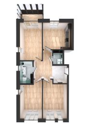 В проекте 3 комнаты для личного пространства домочадцев. Окна выходят на разные стороны дома, благодаря чему в помещениях будет больше света. В прихожей есть место для шкафа-купе, где будет удобно хранить все свои вещи.