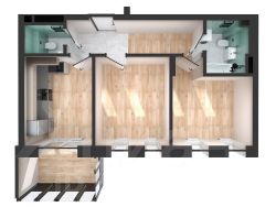 В проекте 2 отдельные комнаты для личного пространства домочадцев.