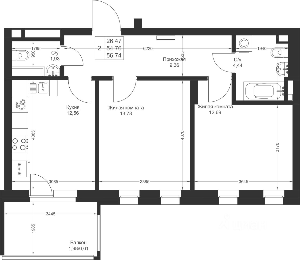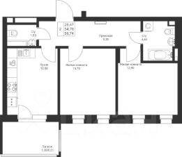 Продается 2-комнатная квартира 129 площадью 56,74 кв.м на 3 этаже в строящемся доме проекта "Новый свет" компании "Ак Барс Дом".