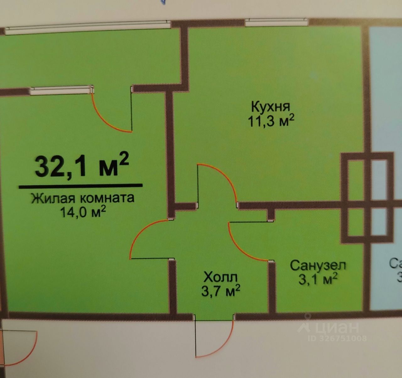 Общая площадь32,1 м²