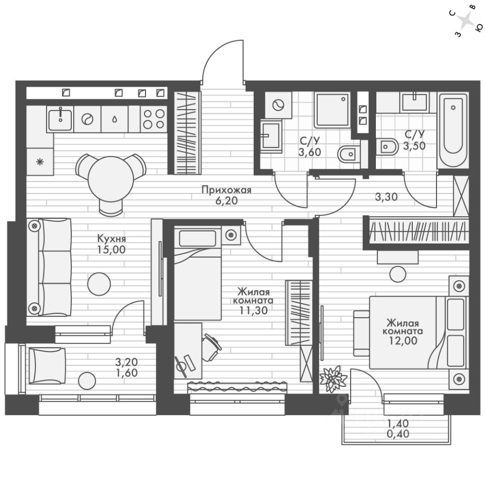 - Мастер-зона с санузлом и гардеробной. Всё для вашего комфорта и удобства, включая личный санузел и гардероб.