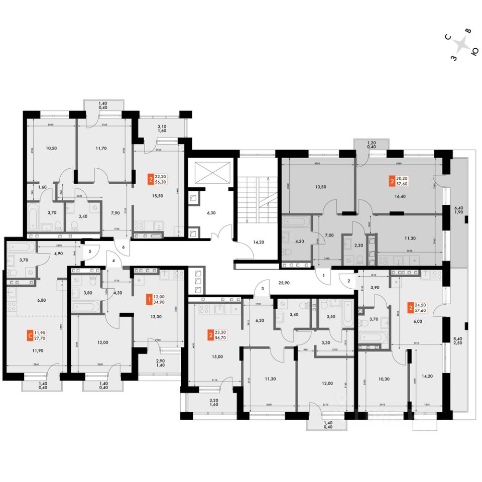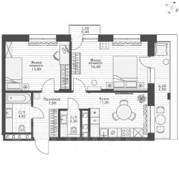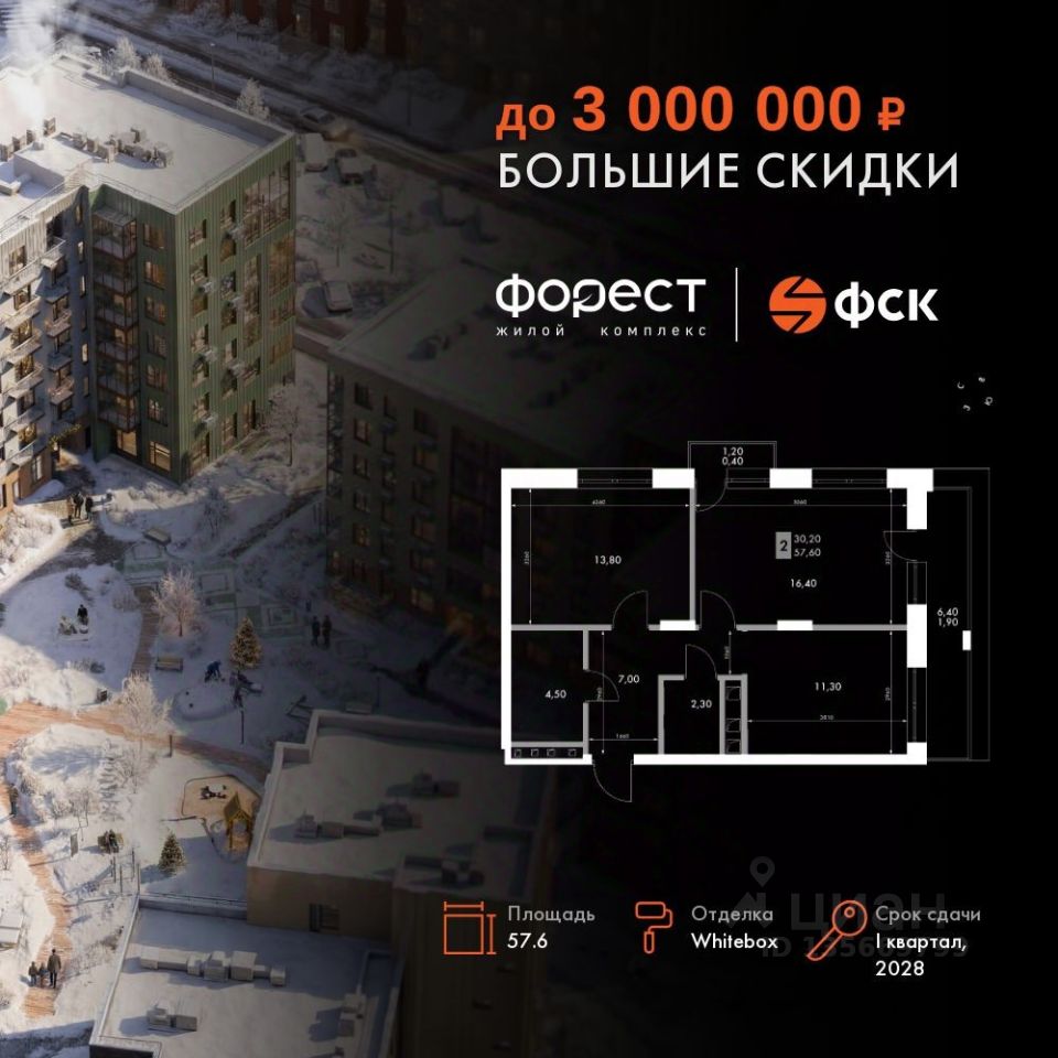 Продаётся 2-к квартира номер 59 общей площадью 57.6 кв.м. на 6-м этаже 6 этажного здания. Отделка Whitebox. Цена с учётом скидки.
