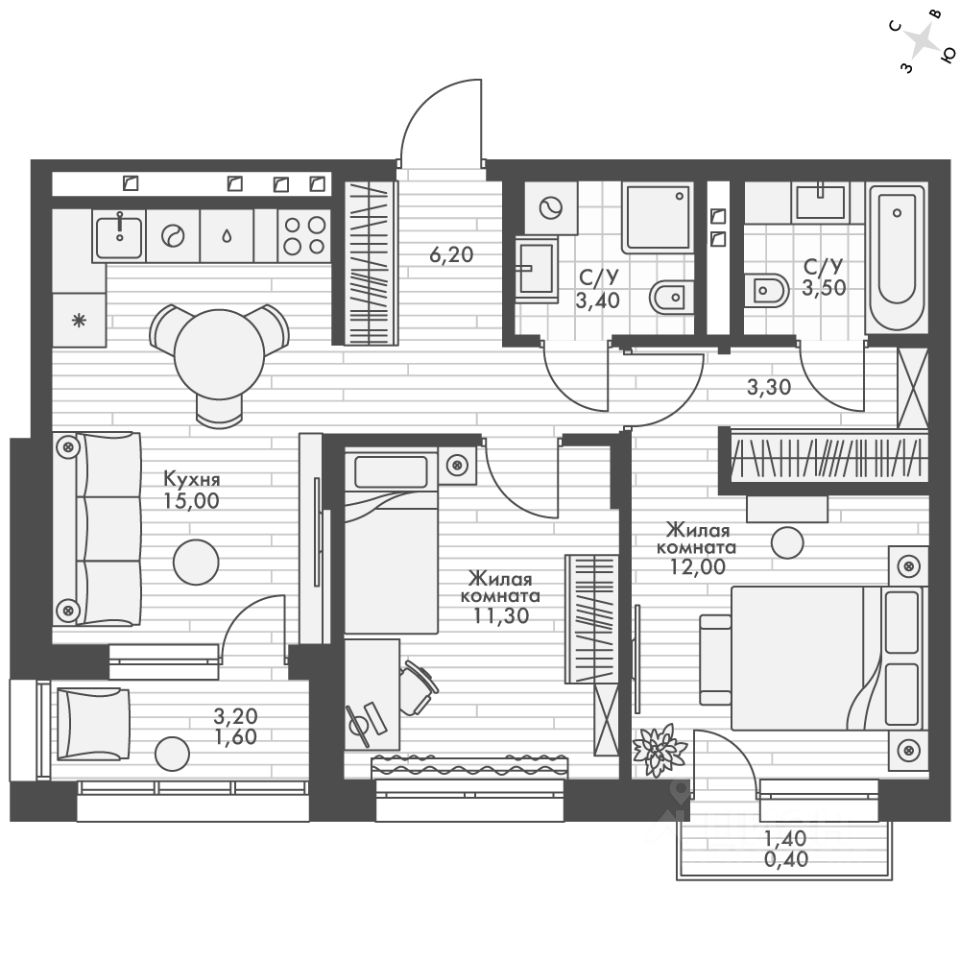 - Мастер-зона с санузлом и гардеробной. Всё для вашего комфорта и удобства, включая личный санузел и гардероб.