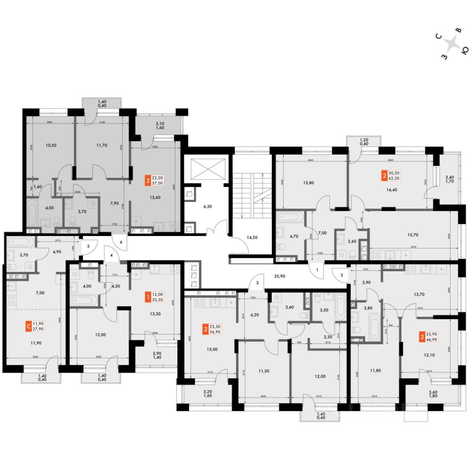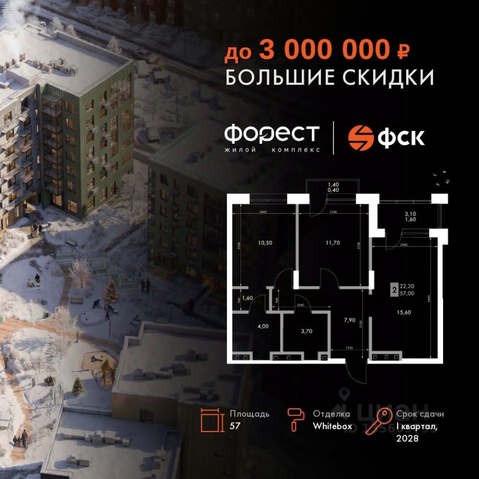 Продаётся 2-к квартира номер 52 общей площадью 57 кв.м. на 4-м этаже 6 этажного здания. Отделка Whitebox. Цена с учётом скидки.