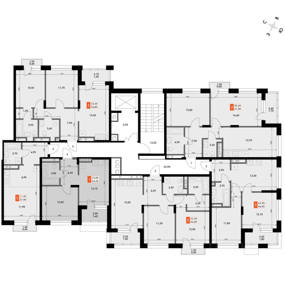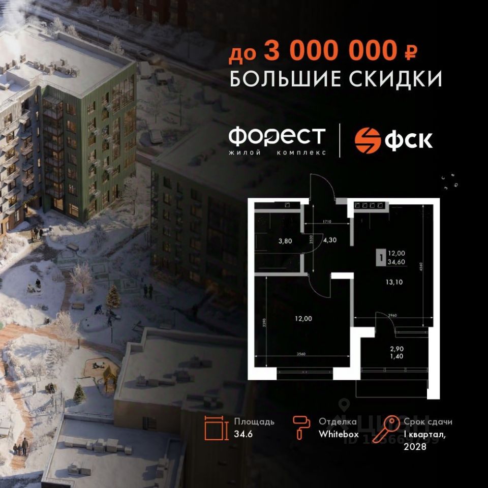 Продаётся 1-к квартира номер 56 общей площадью 34.6 кв.м. на 5-м этаже 6 этажного здания. Отделка Whitebox. Цена с учётом скидки.