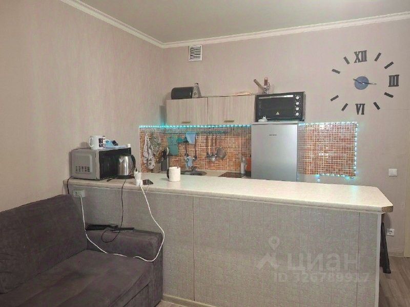 1-х комнатная (студия), 5/19 эт. монолитного дома, дом 2016 года постройки, общая площадь 31,3 кв. м., жилая (кухня-гостиная) 20 кв. м., в хорошем состоянии, сан узел совмещенный в кафеле, большая лоджия с панорамными окнами шикарный вид открывается на всю Казань (застеклена), очень хорошая планировка.