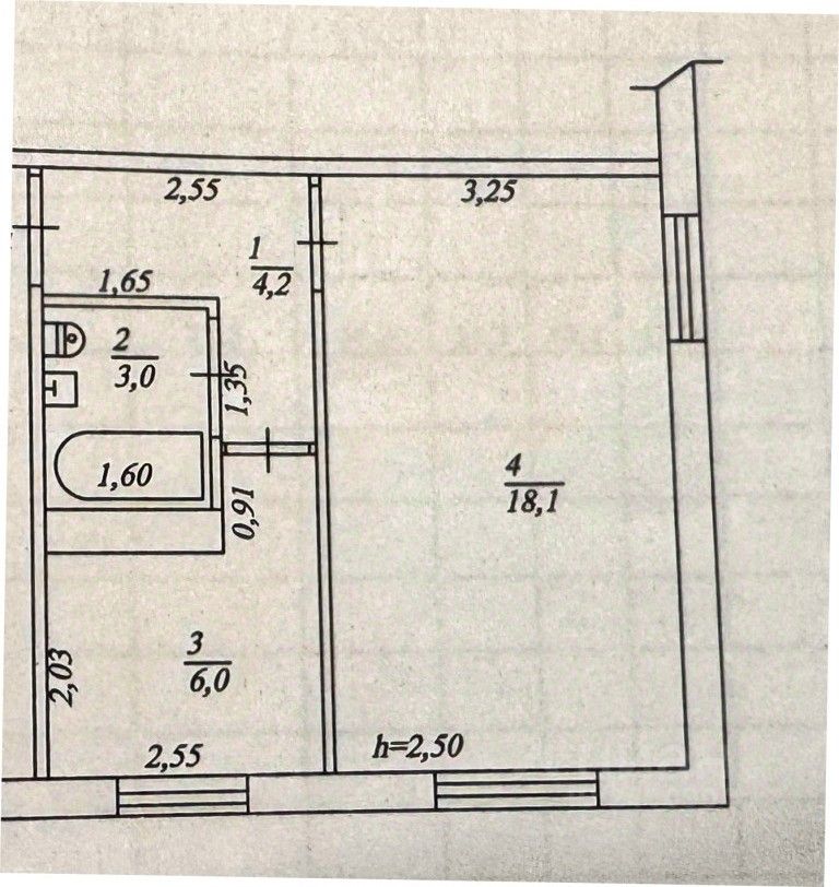 Общая плoщaдь 32 м2, жилая 18.1, кухня 6 м2.